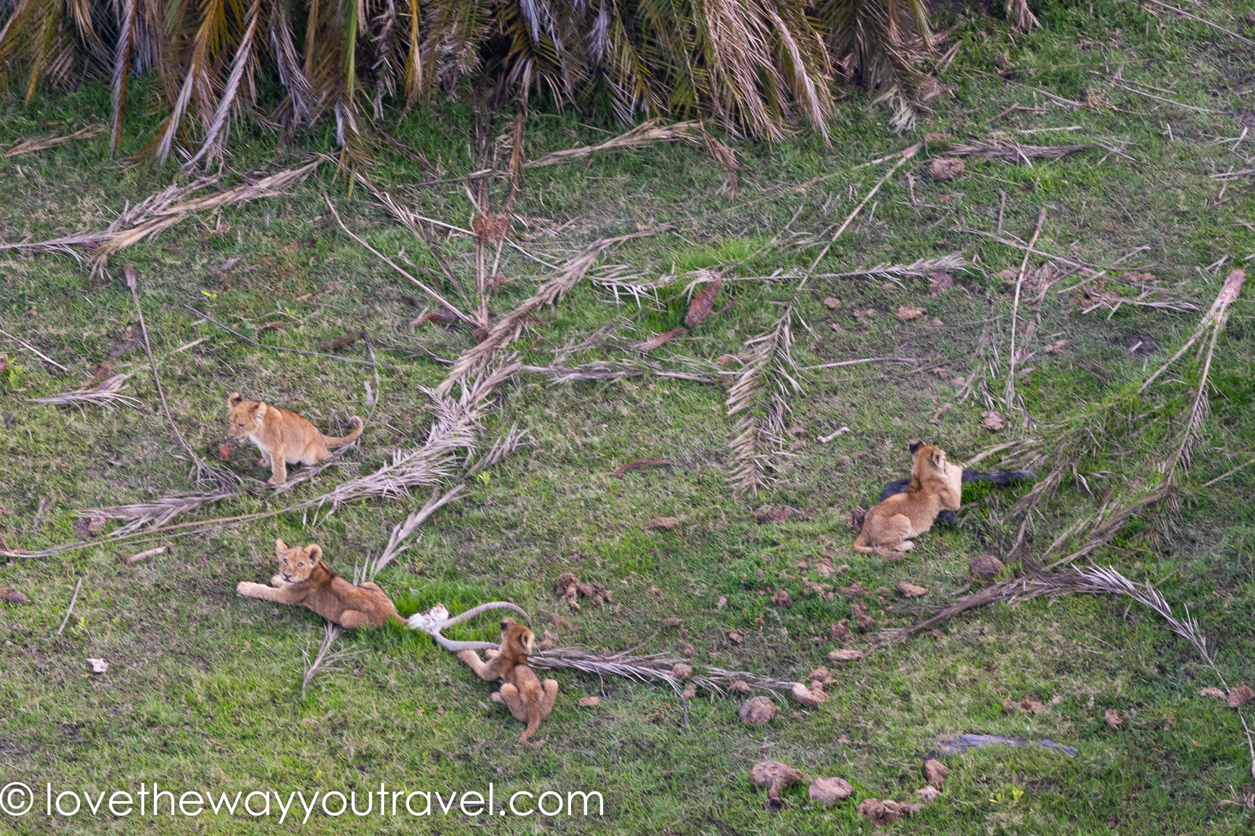 The headset crackled, and our pilot Brett said, 'Let's get a little closer. We'll just do a quick loop around to see them again.' (lions) He was careful not to go too close as to scare them, but close enough so we could see their sweet little faces!